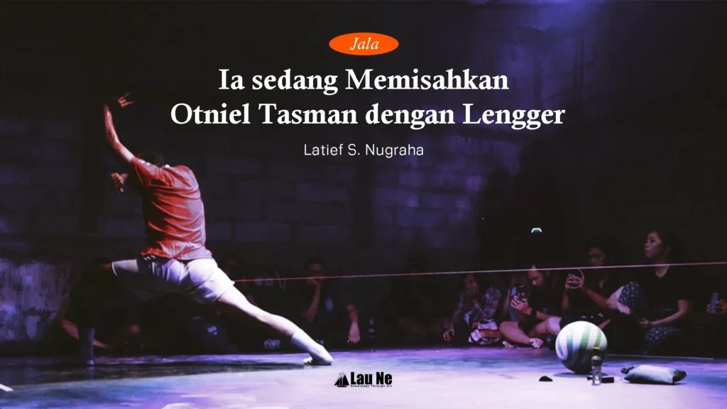 Sebelumnya, black box theatre Sakatoya Collective Space gelap semata—yang tampak putih hanya segulung kertas dan garis isolasi sebagai batas. Kemudian cahaya menyorot sepetak panggung. Dari ujung tampak suatu hal yang serong dengan pola pementasan-pementasannya selama ini: Otniel Tasman muncul tanpa riasan dan pakaian lengger, ia tampil mengenakan jersei bola. Seperti memasuki matra yang ganjil. Sebuah distorsi antara ‘yang sama’ dengan ‘yang lain’.